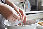 『日本のダシもあるけど、少ないから普段は中国のダシを使います』自宅でナムルを作り、近所の商店に卸している。サハリン南西部の町、ゴルノザホーツクに住んでいる。 |